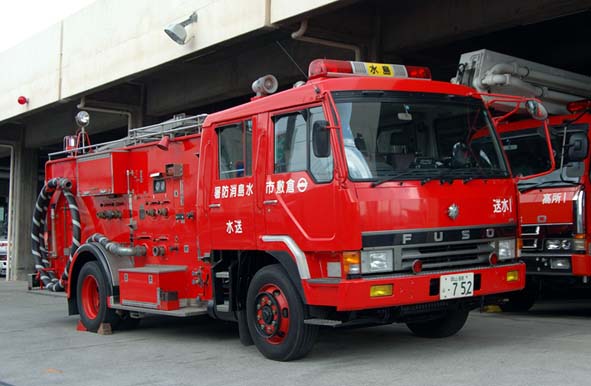 4t〜5t級のキャブオーバーシャーシを使ったポンプ車です。車体が大型になるため、積載スペースにも余裕が出来ることから、救助資機材を積載して救助工作車の代わりとしている車両もあります。、