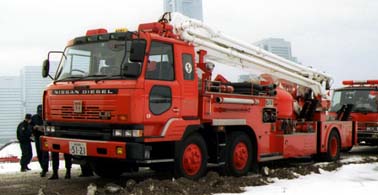 東京電力南横浜発電所自衛消防隊配備 シャーシ:日産ディーゼル ポンプ:A-1級(ME-7B) ブーム:2節22m 製作:森田ポンプ