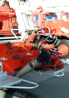 この車輌はGMいちはら工業で製作された非常に珍しい大型高所放水車です。ブーム先端のノズルの上下左右の動作には油圧モーターによるギア制御となっています。