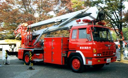 東京消防庁大井消防署八潮出張所配備 シャーシ:日野U-FH2KLAA改 ブーム:2節16m 製作:1991年 森田ポンプ 改造:櫻護謨
