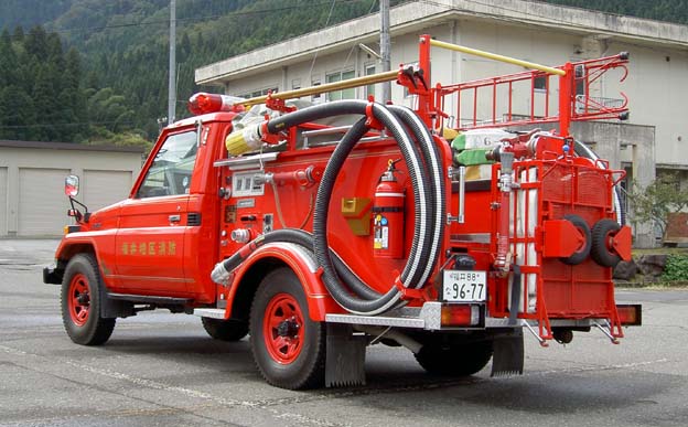 福井地区消防組合消防本部東消防署実山分遣所配備 シャーシ:トヨタKC-HZJ75改 エンジン:1HZ ポンプ:A-2級(ME-5) 製作:1997年 森田ポンプ
