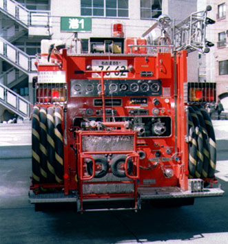 この車両は、5.5tのホイールベースの短いシャーシを使用し、ポンプ操作部を後部に配置する事により、車両の小型化、道路狭隘地区での使用を向上させた車両です。ポンプの操作部が従来の左右ではなく、後部に集中しているので、機関員の操作が容易です。反面、後部に加納式輅車を積載している為、輅車を降ろさないと操作がしづらいという欠点もあるようです。このタイプは一世代前の名古屋市消防局の標準スタイルでした。