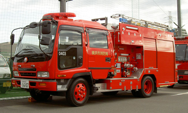 横浜市消防局港北消防署篠原出張所配備 シャーシ:いすゞKL-FSR35D3改 エンジン:6HL1F ポンプ:A-2級(F5) 水槽:1,200L 製作:2004年 畠山ポンプ製作所